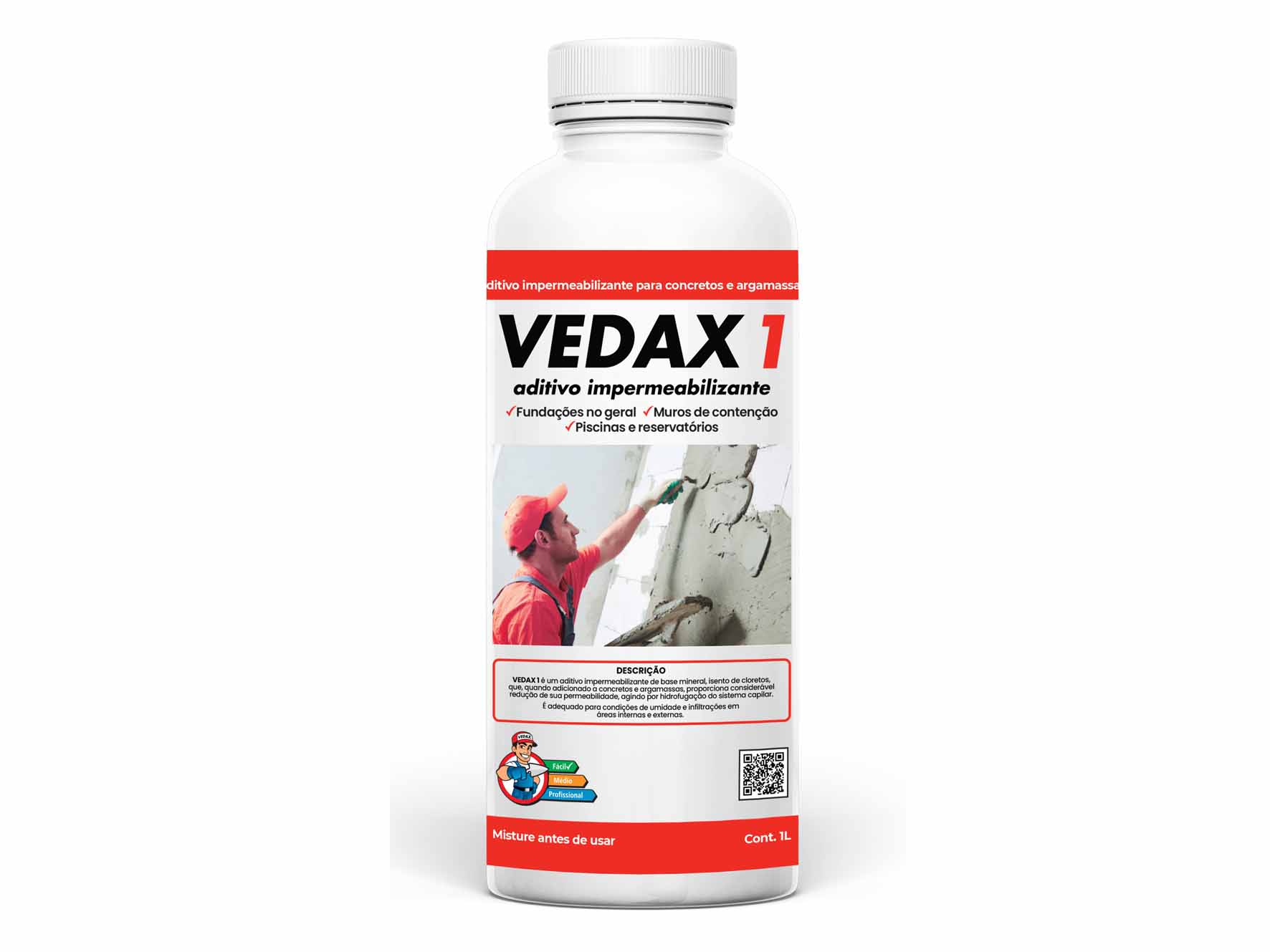 VEDAX 1 é um aditivo impermeabilizante de base mineral, isento de cloretos, que, quando adicionado ao concreto e argamassas, proporciona considerável redução de sua permeabilidade, agindo por hidrofugação do sistema capilar.